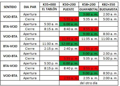 Para esta fecha se suspenderá de forma temporal la medida de reversible o pare y siga en el sentido Villavicencio - Bogotá, por el puente militar.