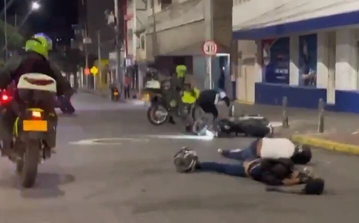 El general José James Roa, comandante de la Policía Metropolitana de Bucaramanga, aseguró que en medio de una persecución, dos motociclistas que huían portando armas de fuego y traumáticas terminaron chocando y quedando heridos.