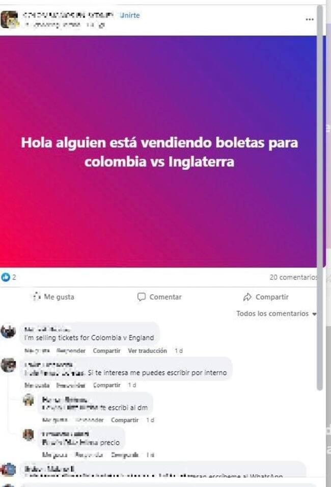 Denuncian estafas en reventa de boletas para Colombia vs Inglaterra