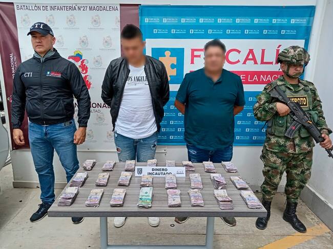Los dos hombres de 48 y 26 años, padre e hijo, fueron capturados en flagrancia por el presunto delito de lavado de activos, y se procedió a dejarlos a disposición de la autoridad competente para las audiencias preliminares de legalización de captura, imputación de cargos y medida de aseguramiento.