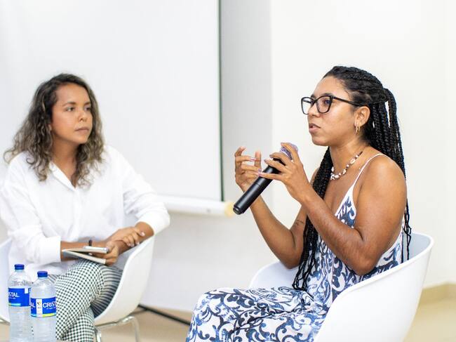 “Para ustedes como comunicadores sociales y periodistas el material principal sigue siendo la palabra, el lenguaje. Para mí como escritora hacer creíble la palabra es algo fundamental. Cuando escriban, háganlo todo el tiempo como si su vida dependiera de ello y como si la vida de otras personas dependiera de ello también. Escribir y publicarlo es un acto y un derecho”, afirmó la escritora Cindy Herrera durante su charla con Cielo Puello, profesora de la UTB.