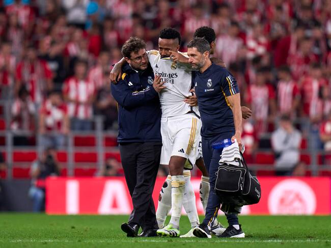 Éder Militao del Real Madrid sale lesionado en encuentro con el Athletic Club (Photo by Diego Souto/Quality Sport Images/Getty Images) / Quality Sport Images