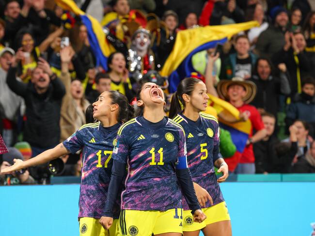 MELBOURNE, VICTORIA, AUSTRALIA - 2023/08/08: Catalina Usme of Colombia (C) celebrates after scoring a goal during the FIFA Women's World Cup Australia & New Zealand 2023 Round of 16 match between Colombia and Jamaica at Melbourne Rectangular Stadium. Columbia won the match 1-0. (Photo by George Hitchens/SOPA Images/LightRocket via Getty Images) / SOPA Images