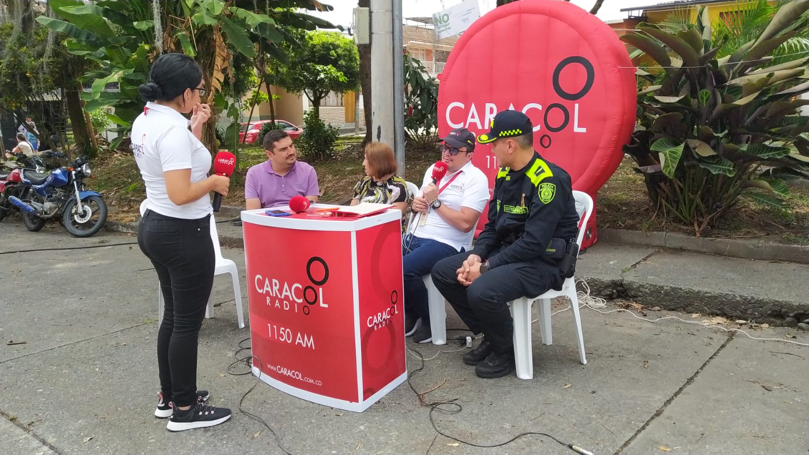 El comandante de la estación de policía, Armenia, mayor Carlos Rojas hizo presencia en el lugar de transmisión del noticiero del mediodía y escuchó las preocupaciones y las solicitudes de los líderes comunales frente a los problemas de inseguridad.