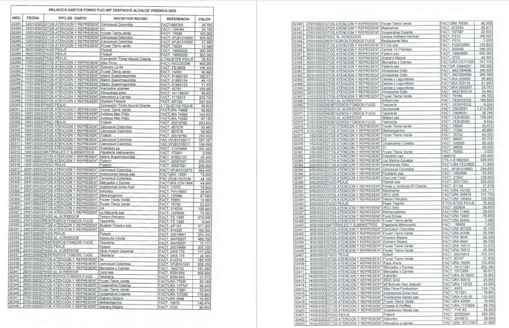 En un documento de dieciocho páginas, se detalla los pagos adelantados con la denominada caja menor del despacho del alcalde de Medellín, Daniel Quintero Calle, donde se observan pagos a carnicerías, establecimientos de licores, tiendas de frutas y verduras, floristería, y hasta buñuelerías.