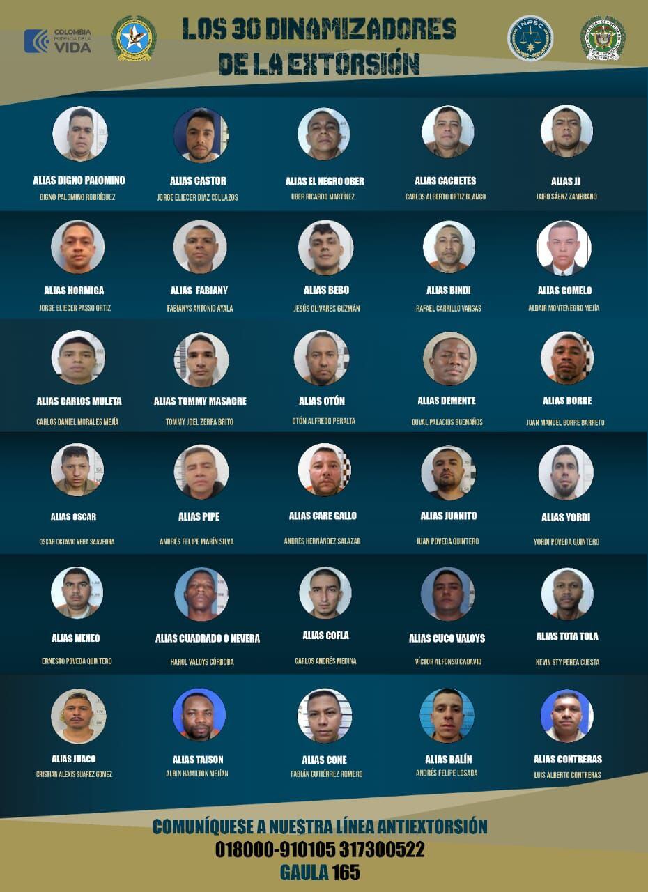Fueron identificados 30 privados de la libertad que continúan delinquiendo con extorsiones desde sus sitios de reclusión.