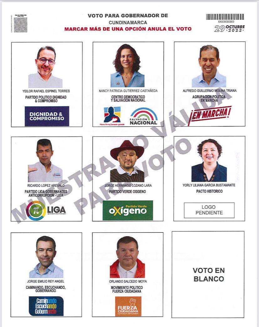 Así quedó el tarjetón electoral para la Gobernación de Cundinamarca