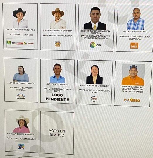 Finalmente, así quedó el tarjetón para las elecciones a la Gobernación del Casanare: