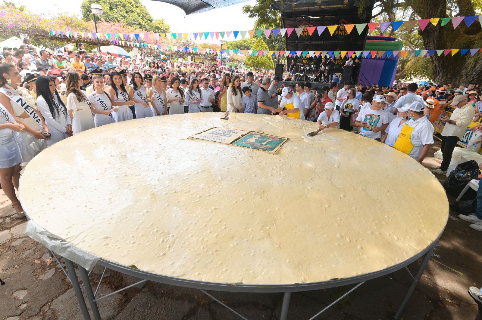 La producción demandó la utilización de un impresionante total de 4500 litros de leche, lo que resultó en un monumental quesillo de 5 metros de diámetro, dejando una huella imborrable en el registro gastronómico nacional.