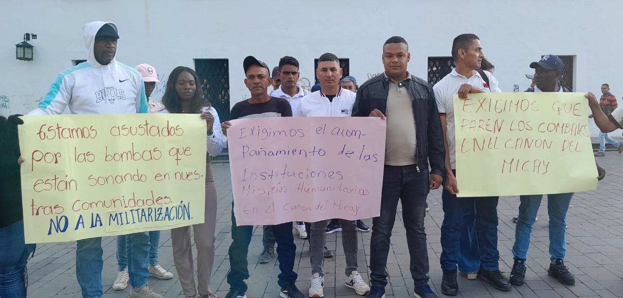 Juan Pablo Giraldo, líder, narró que “estamos pidiéndole al Gobierno que pare la ofensiva en el Cañón del Micay. Somos los campesinos los que estamos sufriendo los bombardeos. Tenemos niños asustados por las ‘bombas’ que han caído. La gente no sabe qué hacer”.
