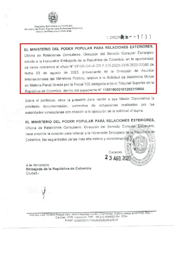 El documento se expidió en respuesta a un requerimiento que hizo la fiscal 100 Delegada ante el Tribunal y adscrita a la Dirección Especializada contra la Corrupción, en medio de un proceso que se adelanta en Colombia contra la fiscal Angélica Monsalve por los delitos de prevaricato y fraude procesal.