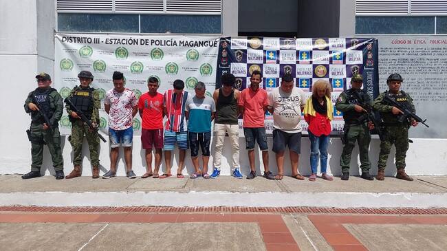 En Magangué, fueron capturados siete de ellos, entre los que se encuentran alias ‘Fauth’, presunto cabecilla de esta estructura y quien tiene anotaciones por hurto, tráfico, fabricación y porte de estupefacientes; alias ‘Jordi’, ‘Eloy’, ‘Tres Pelos’, ‘Peligro’, ‘Cuadrado’ y ‘Vladimir’, este último tiene anotaciones judiciales por homicidio.