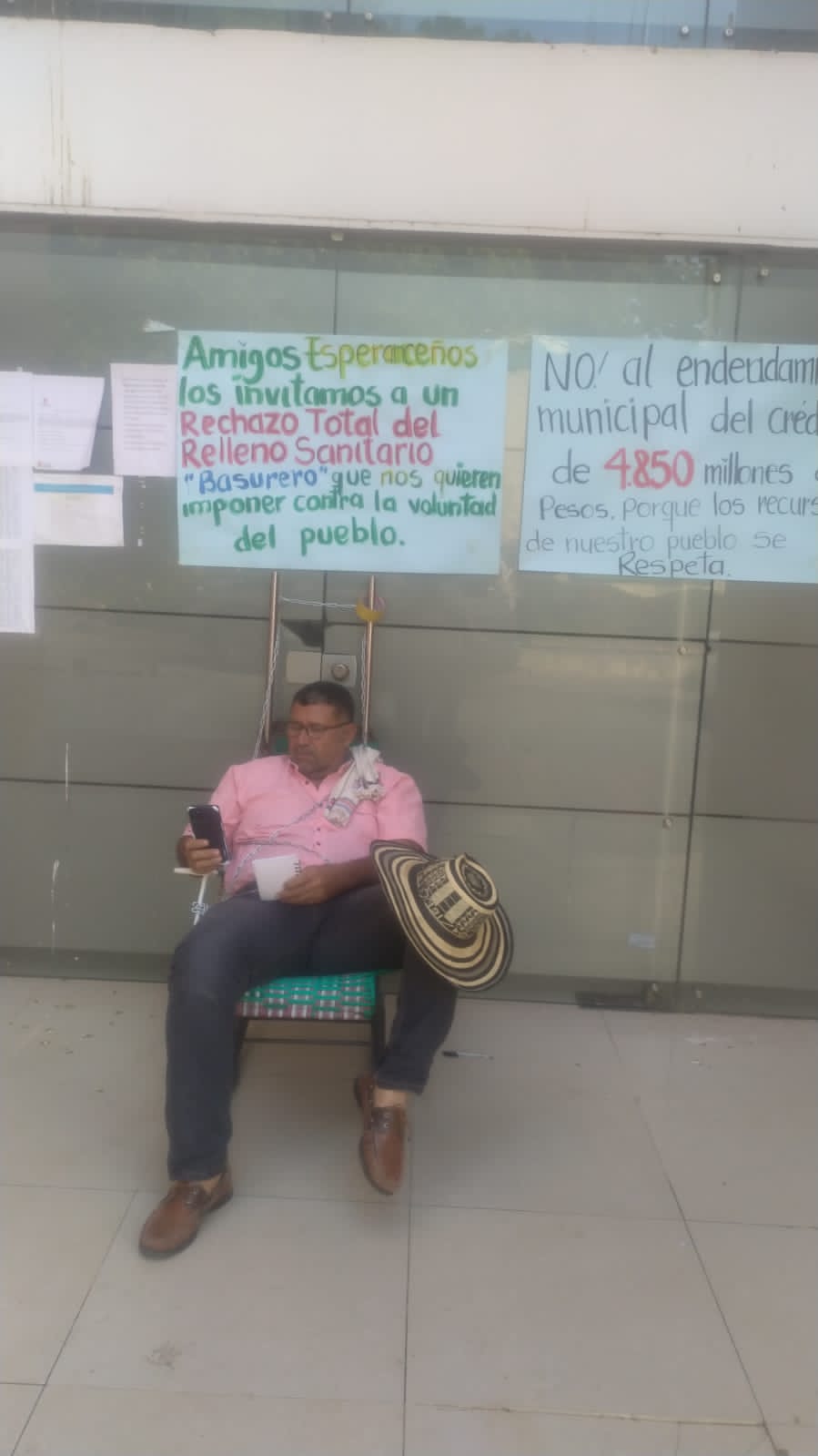 Seis días completa un líder comunal encadenado frente a la alcaldía del municipio de La Esperanza, a modo de rechazo al proyecto de instalación de un relleno sanitario que recibiría basuras de varios municipios de Norte de Santander, Santander y el Cesar.