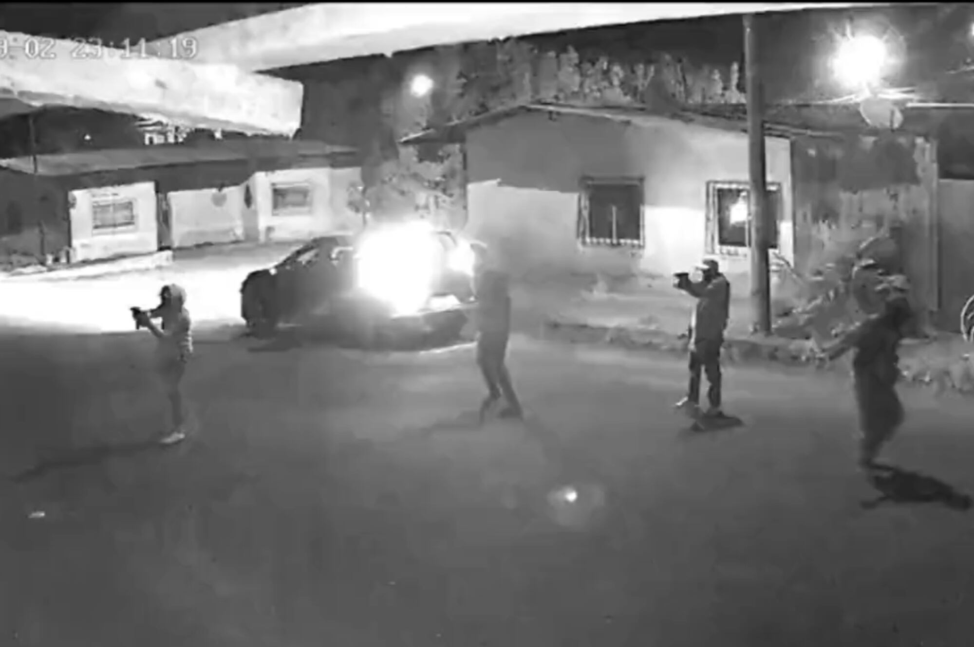 En el clip de apenas 31 segundos, se evidencia cómo los hombres atacan sin temor a la vivienda. Cada uno, con un arma en sus manos, dispara en espera de que el auto que los ayudaría a escapar encienda. En esto transcurren 13 segundos y uno a uno ingresan al auto, hasta que logran acelerar.