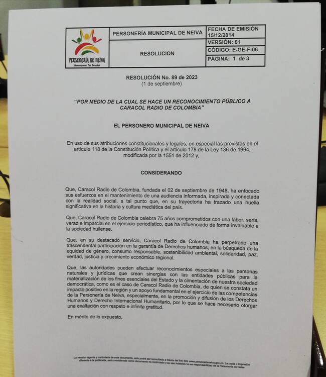 Agradecimiento especial a la Personería de la Ciudad de Neiva