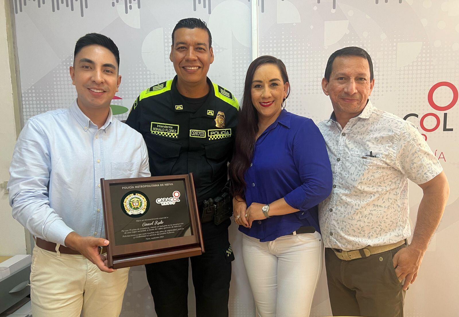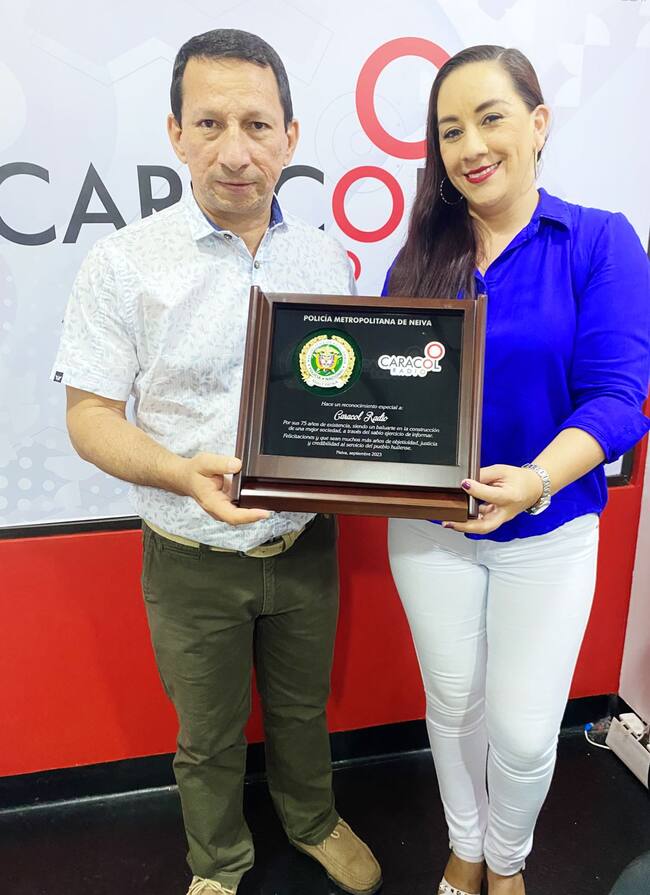 En nombre de todo el equipo de Caracol Radio en la ciudad de Neiva, queremos expresar nuestra más sincera gratitud por el hermoso reconocimiento que nos han otorgado en conmemoración de nuestros 75 años en Colombia.