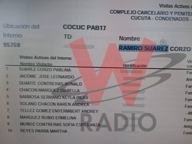 La W conoció en primicia la lista de personas que han visitado al exalcalde de Cúcuta Ramiro Suárez Corzo, condenado a 27 años de prisión como determinador del homicidio del abogado Alfredo Enrique Flórez.