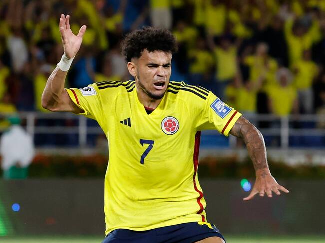 Luis Díaz de Colombia reacciona tras una jugada de gol hoy, en un partido de las Eliminatorias Sudamericanas para la Copa Mundial de Fútbol 2026 entre Colombia y Venezuela en el estadio Metropolitano en Barranquilla (Colombia). EFE/ Mauricio Dueñas Castañeda / Mauricio Dueñas Castañeda (EFE)
