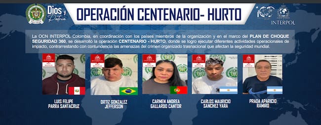 En el marco de la operación ‘Centenario’ la Dirección de Investigación Criminal e Interpol (Dijín) logró la captura de 5 personas pedidas en extradición por Portugal, Perú, Argentina, y Brasil, por el delito de hurto.