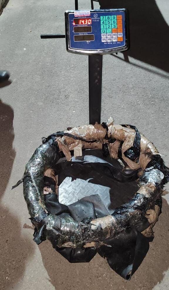 El alcaloide derivado de la cocaína que fue incautado por la policía se halló en las llantas traseras de una camioneta que era ocupada por dos personas que fueron capturados.