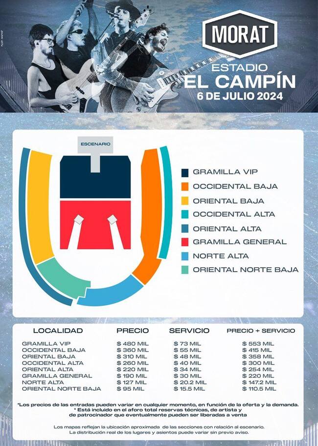 El anuncio se dio en sus redes sociales, pero habían dado pistas desde hace dos semanas en Bogotá con murales que decían “VOLVEREMOS”. También en el clásico capitalino, que se jugó el 10 de septiembre en entre Millonarios y Santa Fe, ambos equipos hicieron el calentamiento en cancha previo al partido con indumentaria de Morat, algo nunca antes visto en Bogotá. Si desea asistir al concierto la boletería para venta general estará disponible a partir del 16 de septiembre en Tu Boleta.