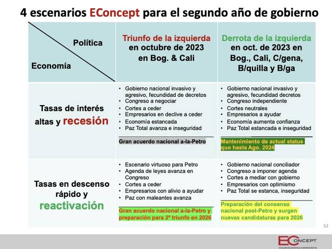 Se habla de un panorama incierto ante la probabilidad de que el Gobierno Petro gane o pierda las elecciones en las principales ciudades, y esto pueda jugar un papel importante y primordial en una posible recesión.