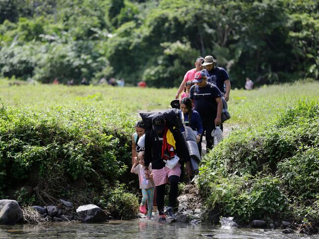 USA8873. DARIÉN (PANAMÁ), 07/09/2023.- Fotografía de archivo fechada el 18 de agosto de 2023 donde aparecen unos migrantes acompañados con niños pequeños mientras caminan en el sector de Cañas Blancas en Darién (Panamá). Una cantidad récord de 40.000 niños ha cruzado en la primera mitad de 2023 la selva del Darién, entre Colombia y Panamá, en un movimiento migratorio que realizan solos o con sus familias, según explicó este jueves la organización Unicef. EFE/Carlos Lemos /ARCHIVO / Carlos Lemos (EFE)