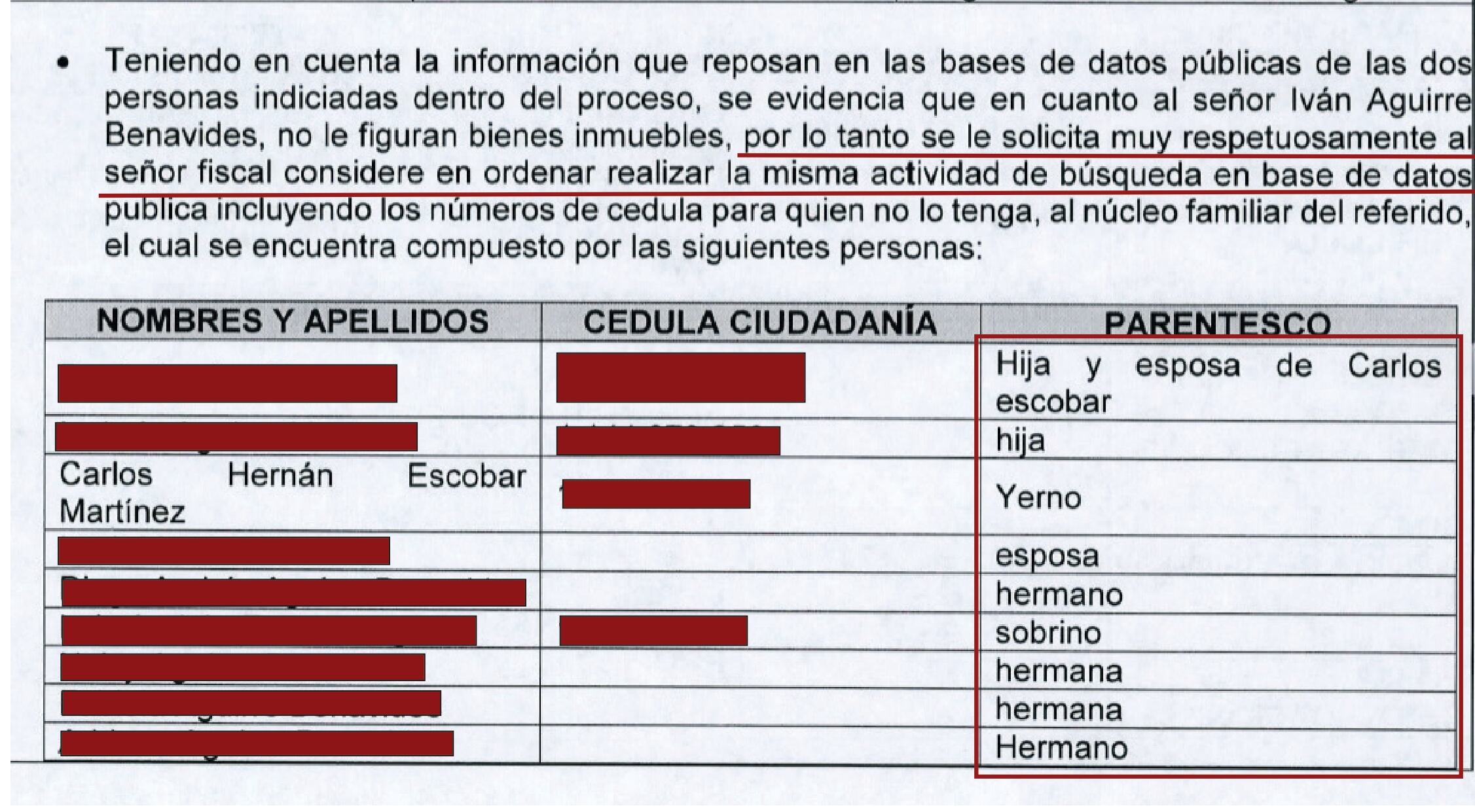 El abogado Carlos Hernán Escobar, denunció que la Fiscalía ordenó investigarlo sin motivación alguna, al parecer por ser el defensor y miembro del núcleo familiar del exfiscal Iván Aguirre, uno de los exfuncionarios investigado por supuesta corrupción judicial.