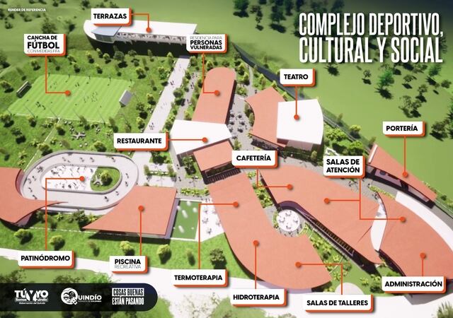 Maqueta del centro social y deportivo en Calarcá. Foto Cortesía Gobernación del Quindío
