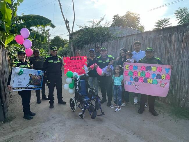 Lorena es la segunda de cuatro hermanos, es la más risueña, la más cariñosa, la más amiguera y como toda niña, celosa con su mamá. Junto a su familia, viven en una casa propia en el corregimiento de Vesubio, en el municipio de Talaigua Nuevo y hasta allá, llegaron uniformados de la estación de Policía para entregarle una silla de ruedas neurológica, que facilitaría su movilidad y desplazamiento.