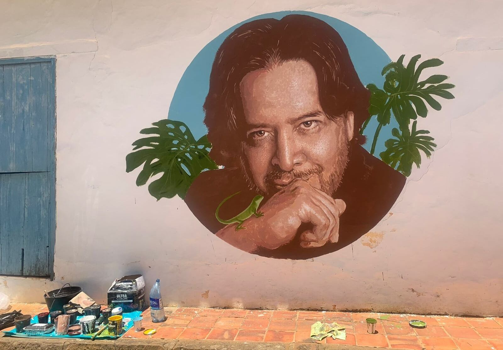 Artistas locales pintaron un mural con su rostro en una de las calles del ‘pueblito más lindo de Colombia’ para recordar su paso por el municipio y su legado en el Festiver.