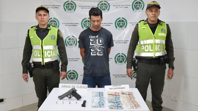 Durante la captura se le incautó al presunto delincuente un arma traumática y una suma de $500.000 en efectivo, al parecer producto de un atraco que había cometido minutos antes a un conductor de buseta.