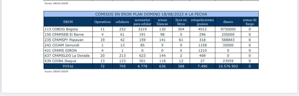 “Hemos adelantado acciones contundentes para erradicar la extorsión carcelaria, no hemos descansado ni un solo día para enfrentar esos focos de criminalidad (…) Es por esto que dentro de los siete establecimientos de orden nacional donde se encuentran los 30 dinamizadores de la extorsión se han efectuado operativos de registro y control”, dijo el coronel Daniel Gutiérrez, director del INPEC.
