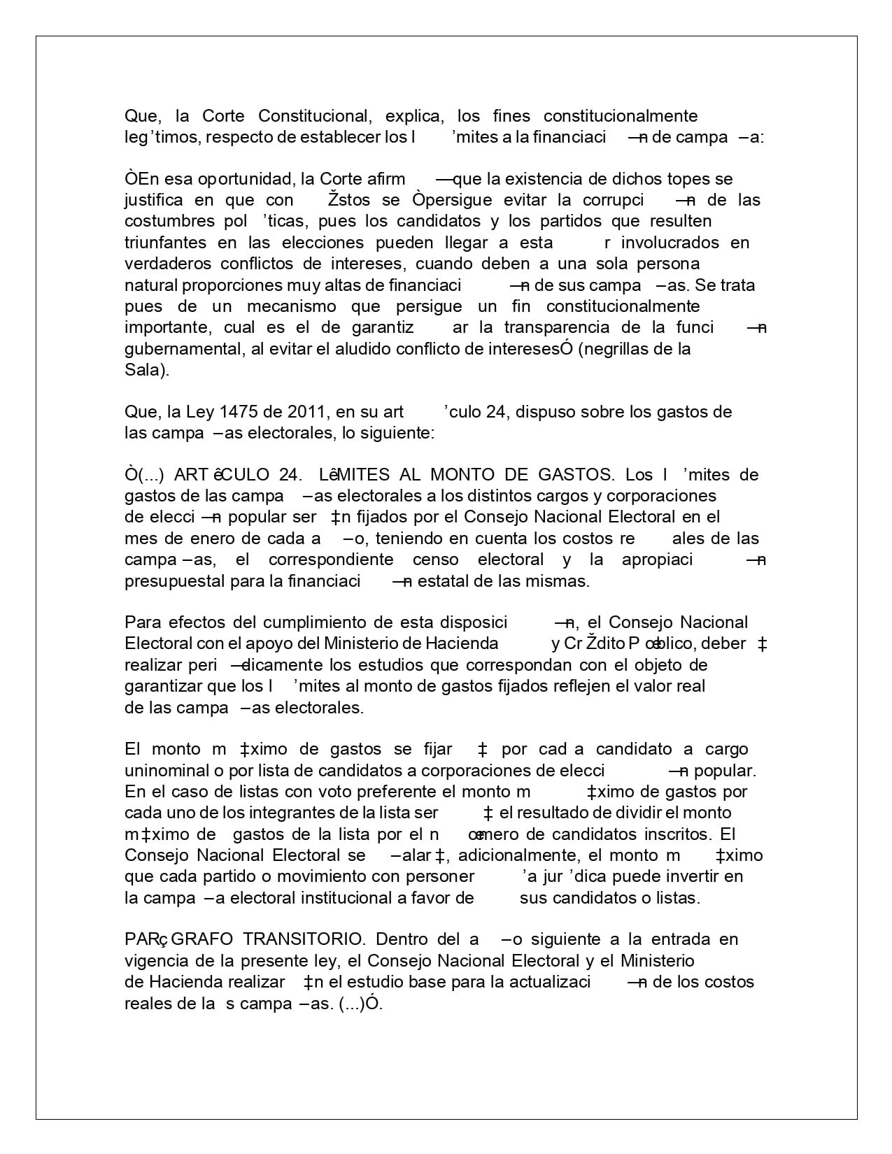 También detalló la denuncia que, el candidato, al parecer,“ financió parte de las actividades de las fiestas patronales, tales como la realización de las populares “corralejas” en las que dentro de las mismas la publicidad política que aparecía era de dicho candidato, las cuales están avaluadas aproximadamente en $50.000.000. La misma administración promociona la actividad mencionando la financiación del candidato.”.