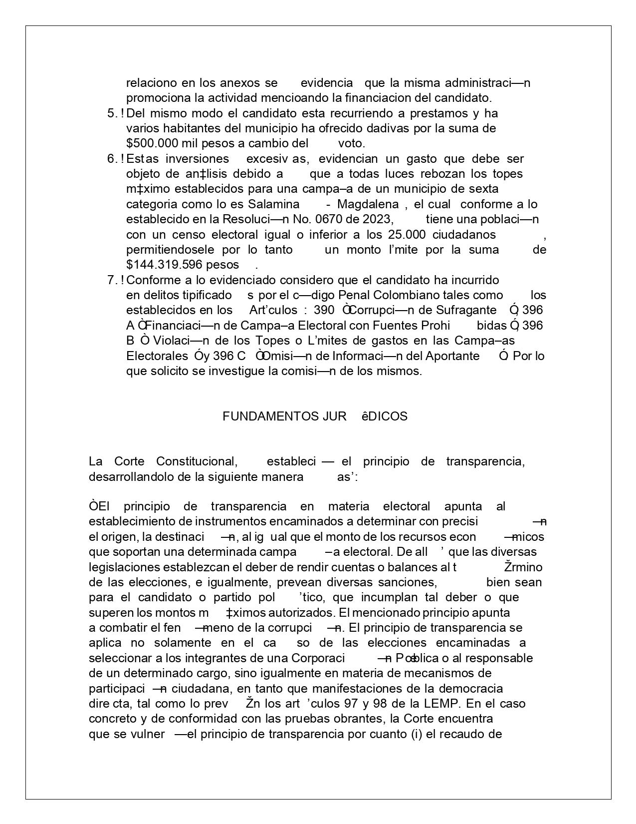 Corolario a lo anterior, evidenciarían para los ciudadanos un gasto que debería ser objeto de análisis debido a que estas acciones alcanzan “los topes máximos establecidos para una compaña de un municipio de sexta categoría como lo es Salamina, Magdalena, el cual conforme a lo establecido en la Resolución No. 0670 de 2023, tiene una población con un censo electoral igual o inferior a los 25.000 ciudadanos, permitiéndosele por lo tanto un monto límite por la suma de $144.319.596 pesos”.
