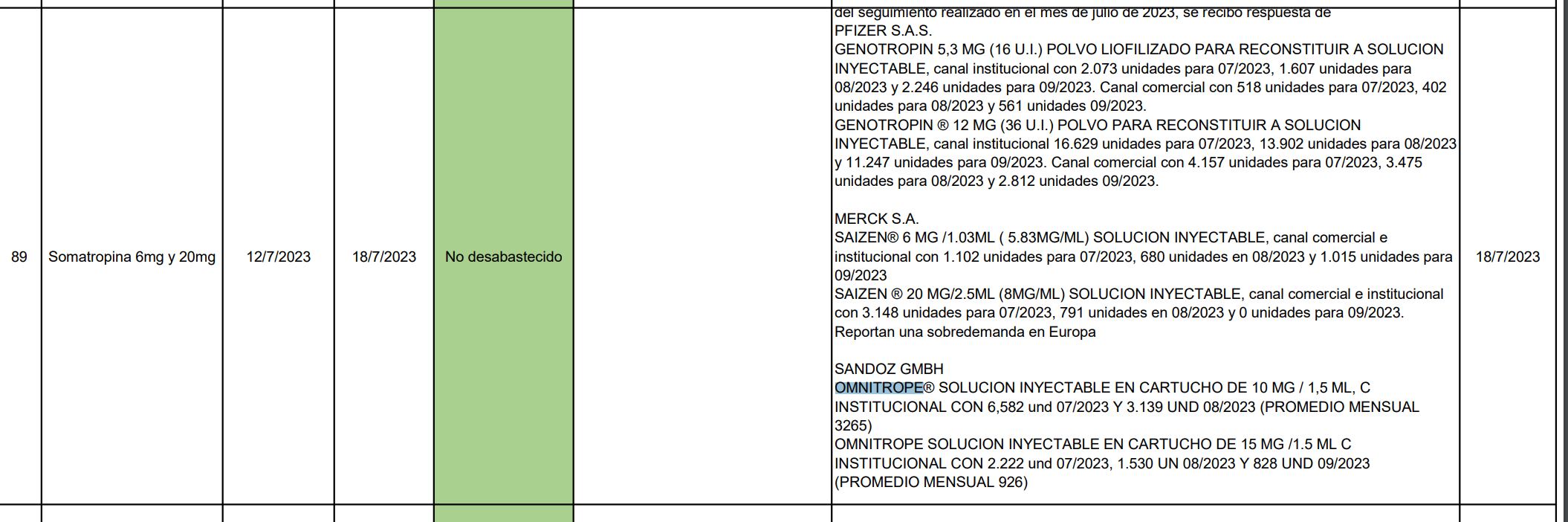 Inexactitud en la información de Invima sobre desabastecimiento de Omnitrope
