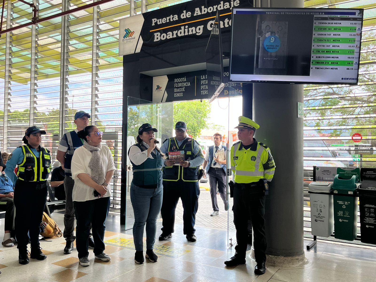 La Gerente de la terminal de transportes de Neiva Rahda Hermosa Camacho, hace un llamado a los usuarios de “no usar la informalidad, ni la ilegalidad, es un fenómeno en todo nuestro país, pero estamos trabajando articuladamente con todas las entidades de control y vigilancia para garantizarle a nuestros usuarios y por supuesto extendiendo una cultura legal a nuestros usuarios para que utilicen un transporte seguro desde las terminales de Colombia puesto que esta esta transporte ilegal e informal no les garantiza una póliza de seguros, ni personal idóneo que haga estos recorridos”.