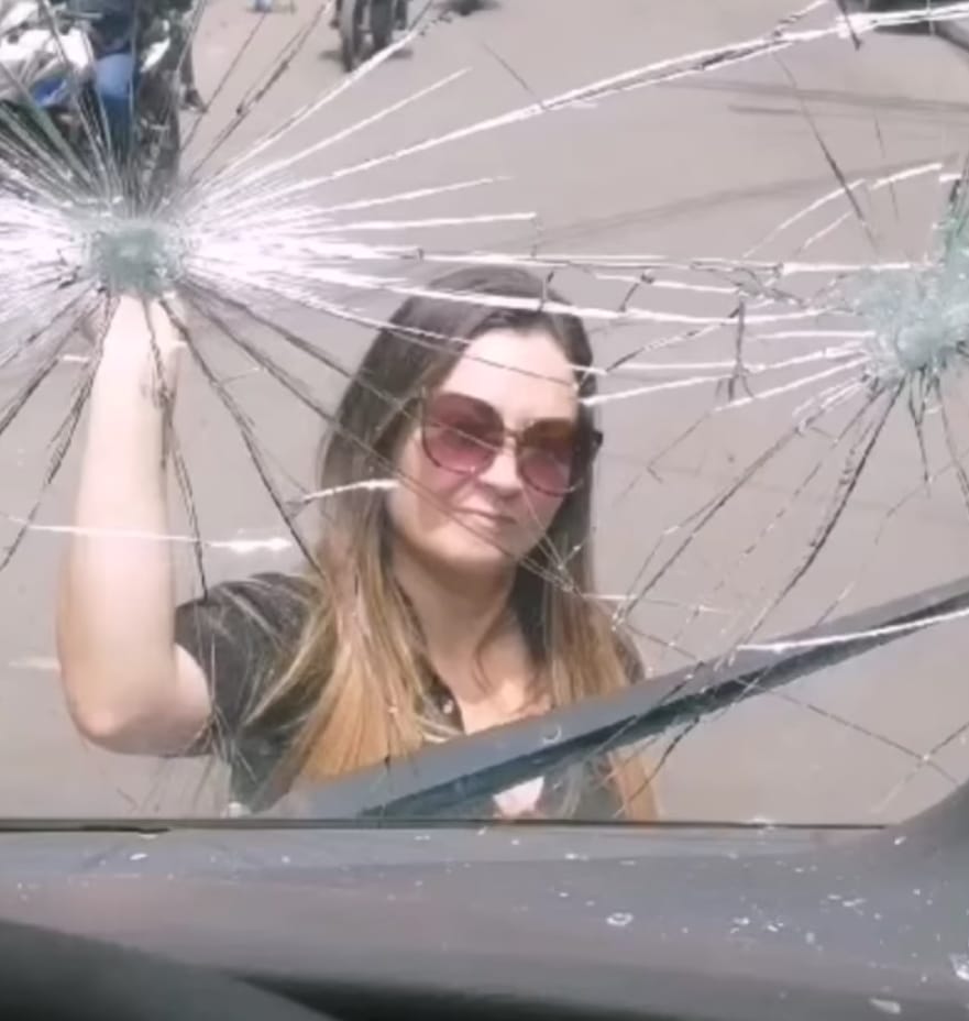 Una mujer rompió los vidrios de un SITP con un martillo en medio de una discusión