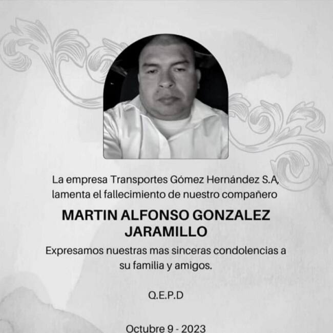 La confirmación la hizo la misma empresa la cual manifestó que la víctima de este accidente es Martín Alfonso González Jaramillo, quien se desempeñaba como ayudante de uno de los vehículos. Recordemos que de ese siniestro se reportaron 12 lesionados.