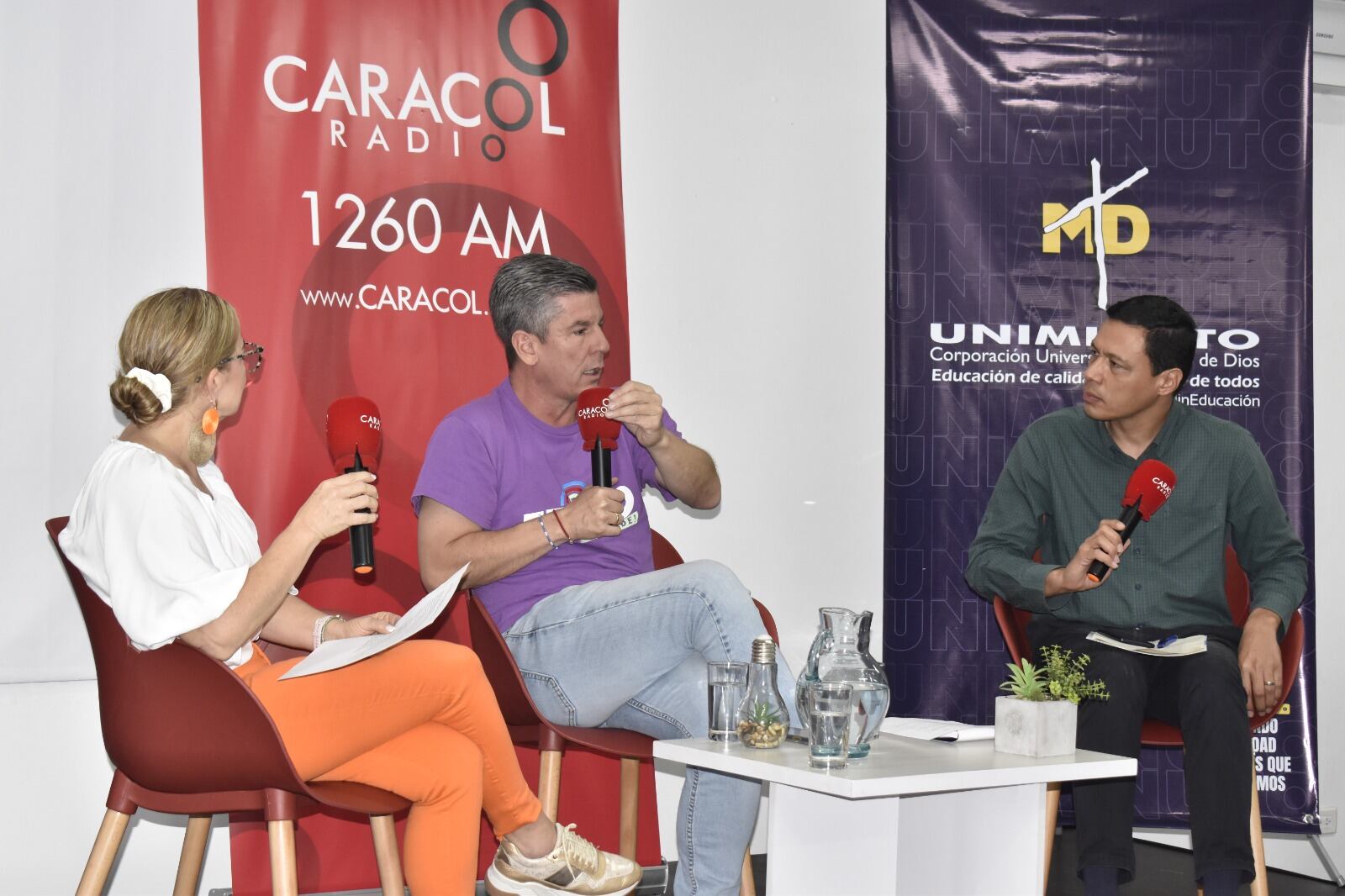 Martha Peña, directora de asuntos corporativos de Uniminuto, Ricardo Ferro, candidato a la Alcaldía de Ibagué y Harold Bonilla, periodista de Caracol Radio