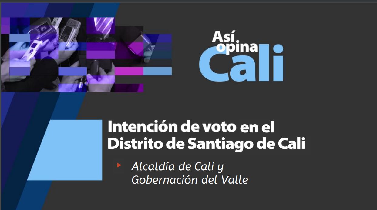 La última encuesta de opinión y percepción política que mide la intención de voto de los caleños para elegir alcaldía y gobernación fue publicada por MMejía Consultores S.A.S.