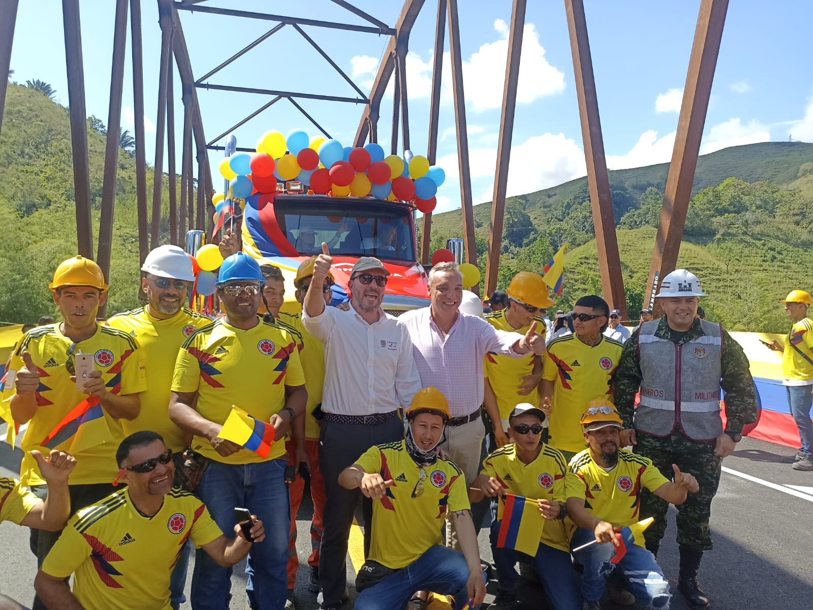Fueron momentos de alegría entre los trabajadores, contratistas, operadores que se fijaron la meta en tiempo record de entregar este nuevo puente al país, cuyo costo se estima en 25.000 millones de pesos