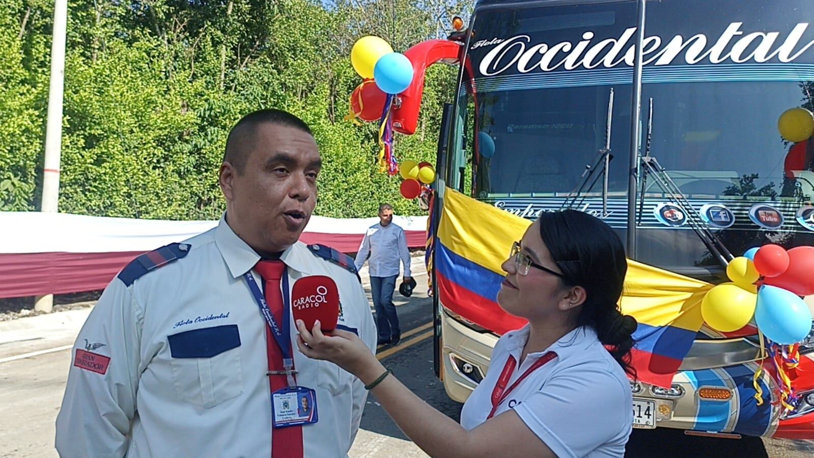 Juan Valencia conductor de un bus de flota occidental fue el primero en cruzar por el nuevo puente el alambrado “nos disminuye en tiempo costos de viaje, para los comerciantes es volver a tener ganancias”