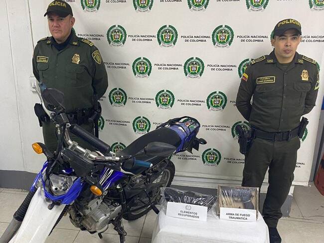 Los capturados de 22 y 28 años, los elementos recuperados, arma y moto incautada fueron puestos a disposición de la Fiscalía General de la Nación.