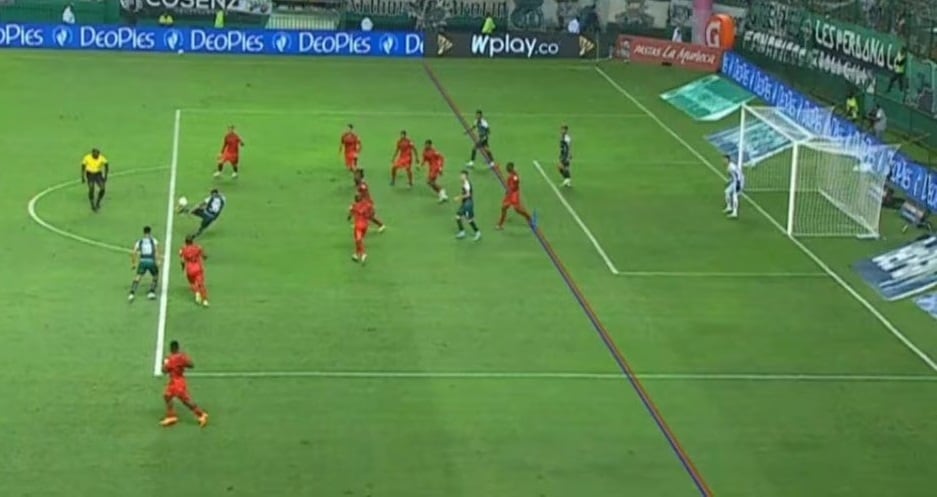 No obstante, el periodista Paolo Arenas se encargó de sacar a la luz una nueva imagen que permitió tener mucha más claridad respecto a la posición del delantero del Cali. La novedad de esta, es que se tomó desde la tribuna contraria a la mostrada por la transmisión, es decir la occidental y en ella se puede apreciar que realmente sí estaba en posición irregular el Chino.