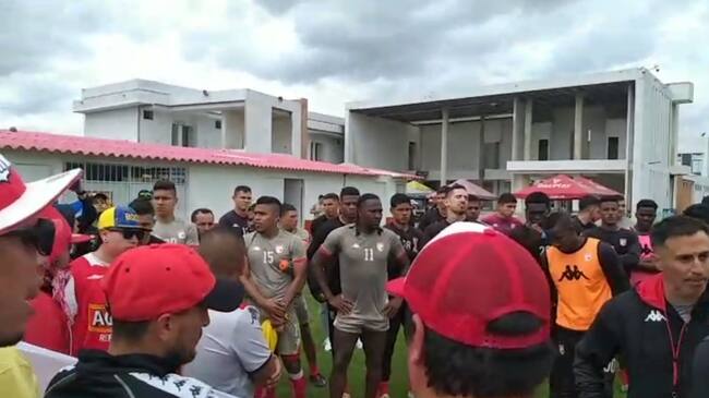 La Guardia Albirroja Sur ingresó en la mañana de este miércoles 18 de octubre a la sede deportiva del club en Tenjo y encaró al cuerpo técnico y jugadores del equipo, exigiendo resultados, junto a una pancarta que decía: “Clasificar es una obligación”.