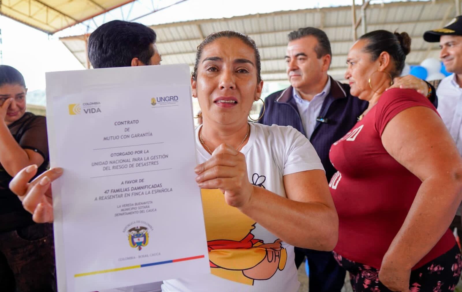 La Unidad Nacional de Gestión del Riesgo entregó 11 fincas, 764 hectáreas, a las familias damnificadas por el movimiento en masa del anterior 9 de enero del presente año en la vereda Chontaduro del municipio de Rosas en el sur del Cauca.