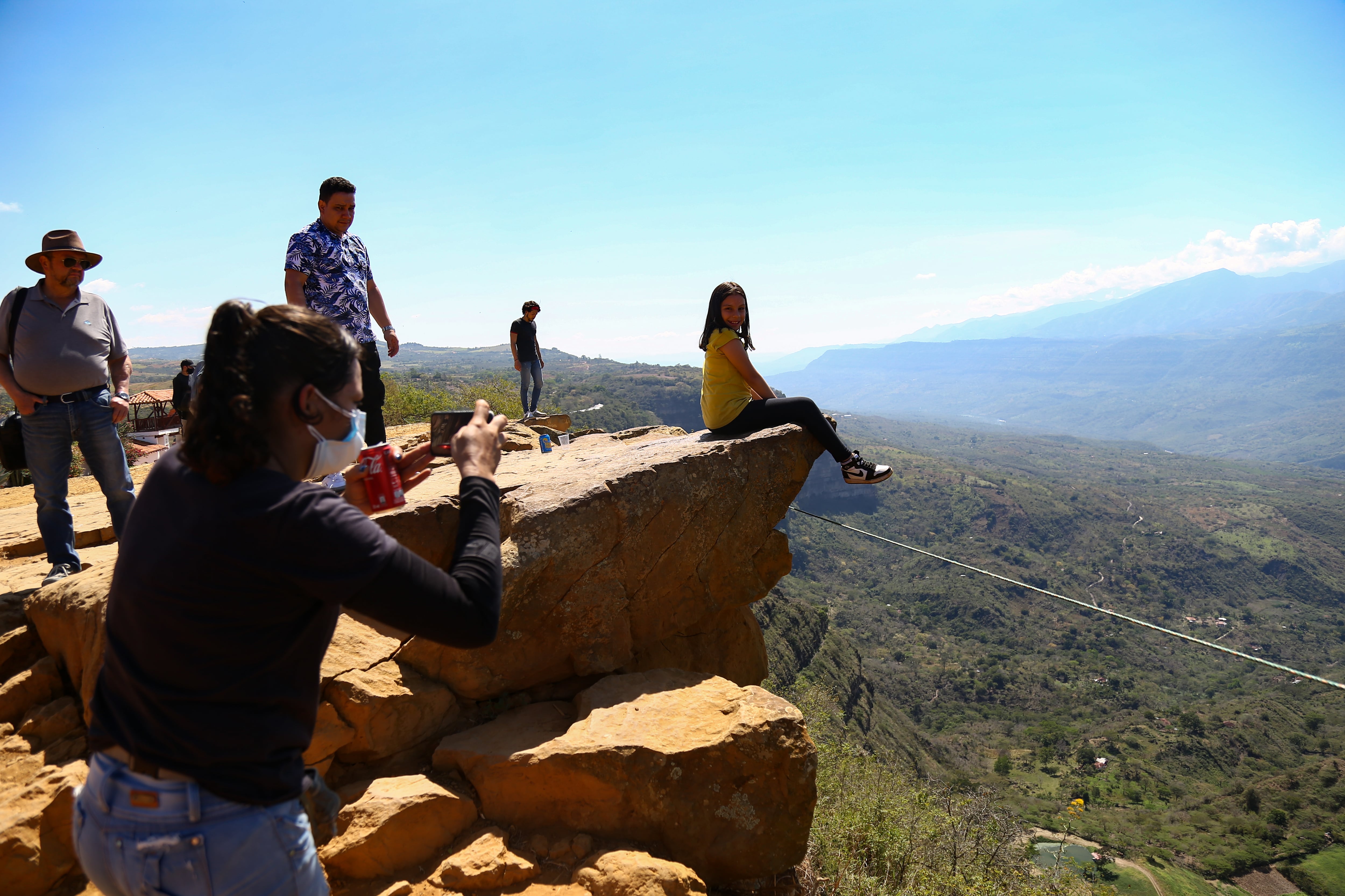 En clavado en los Andes colombianos, este municipio es conocido por sus calles empinadas, las construcciones antiguas de estilo colonial, las paredes blancas adornadas con flores de colores y la claridad del cielo azul, que se pierde en la profundidad de los cañones naturales.