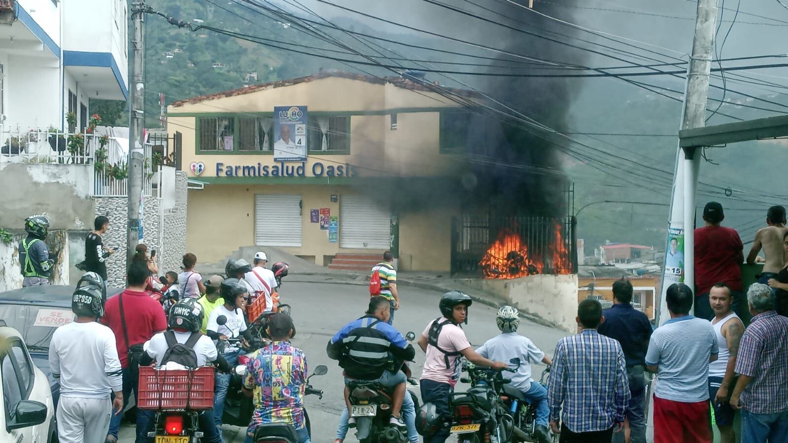 Habitantes del barrio Oasis en Floridablanca, Santander, reportaron un incendio en una vivienda, poniendo en riesgo a varias personas por la cercanía al alumbrado público de la zona, además de una farmacia en la diagonal 17 con 53.