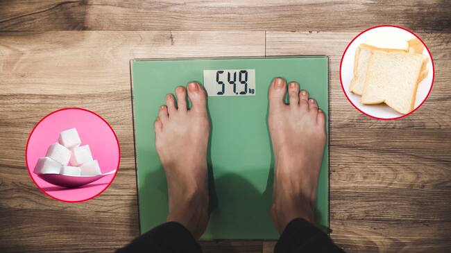 Persona pesándose en la báscula / Azúcar y Pan Blanco (Getty Images)